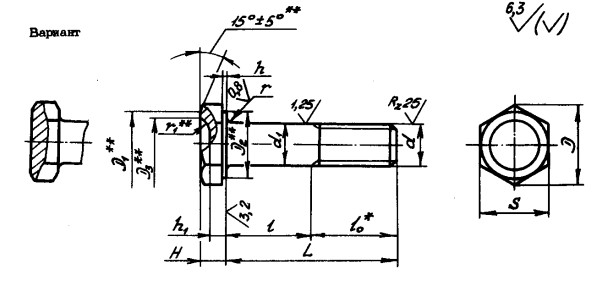 ОСТ 1 31054-79 БОЛТЫ С ОБЛЕГЧЕННОЙ ШЕСТИГРАННОЙ ГОЛОВКОЙ С ПОЛЕМ ДОПУСКА ДИАМЕТРА СТЕРЖНЯ F7