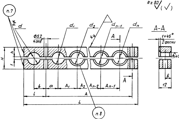 Пример наименования и обозначения вкладыша с отверстиями d1-…- dn: