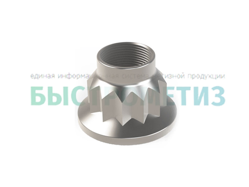 Конструкция гайки состоит из двенадцацити шлицевого стержня и внутреннего отверстия с резьбой.