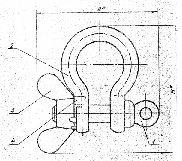 Конструкция состоит из болта (ОСТ 1 10044-84), Скобы (ОСТ 1 10043-84), Гайки (ГОСТ 3032-76) и Шайбы (ГОСТ 13464-77)