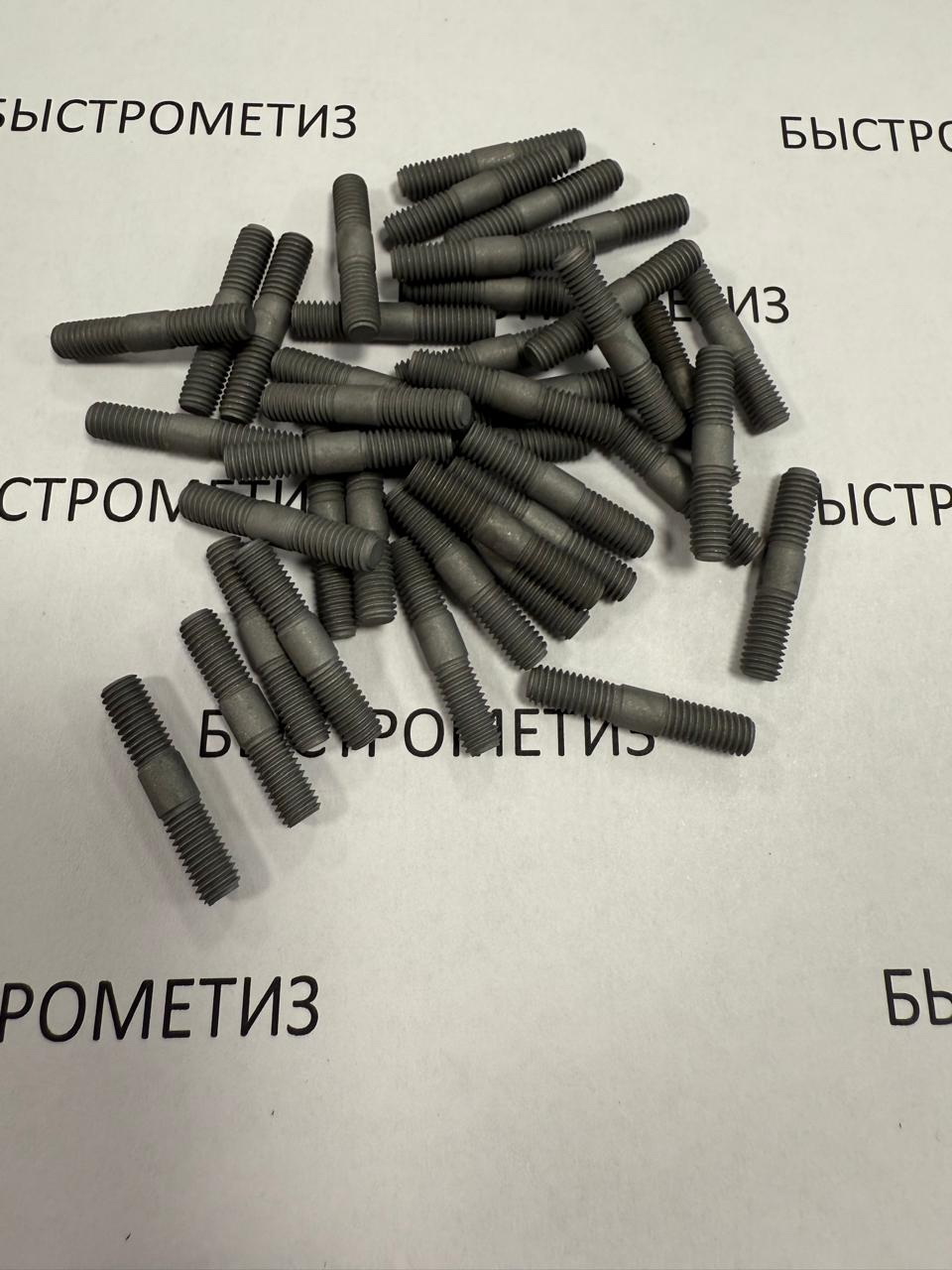 Конструкция шпильки состоит из металлического стерженя с резьбой по краям.